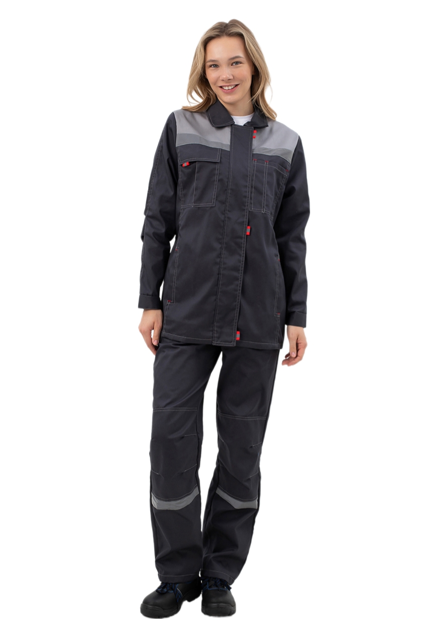Костюм с лентой ФИО что позволяет идентифицировать костюм работника. Усилительные накладки для защиты костюма от истирания: в зоне локтя и колена на брюках.